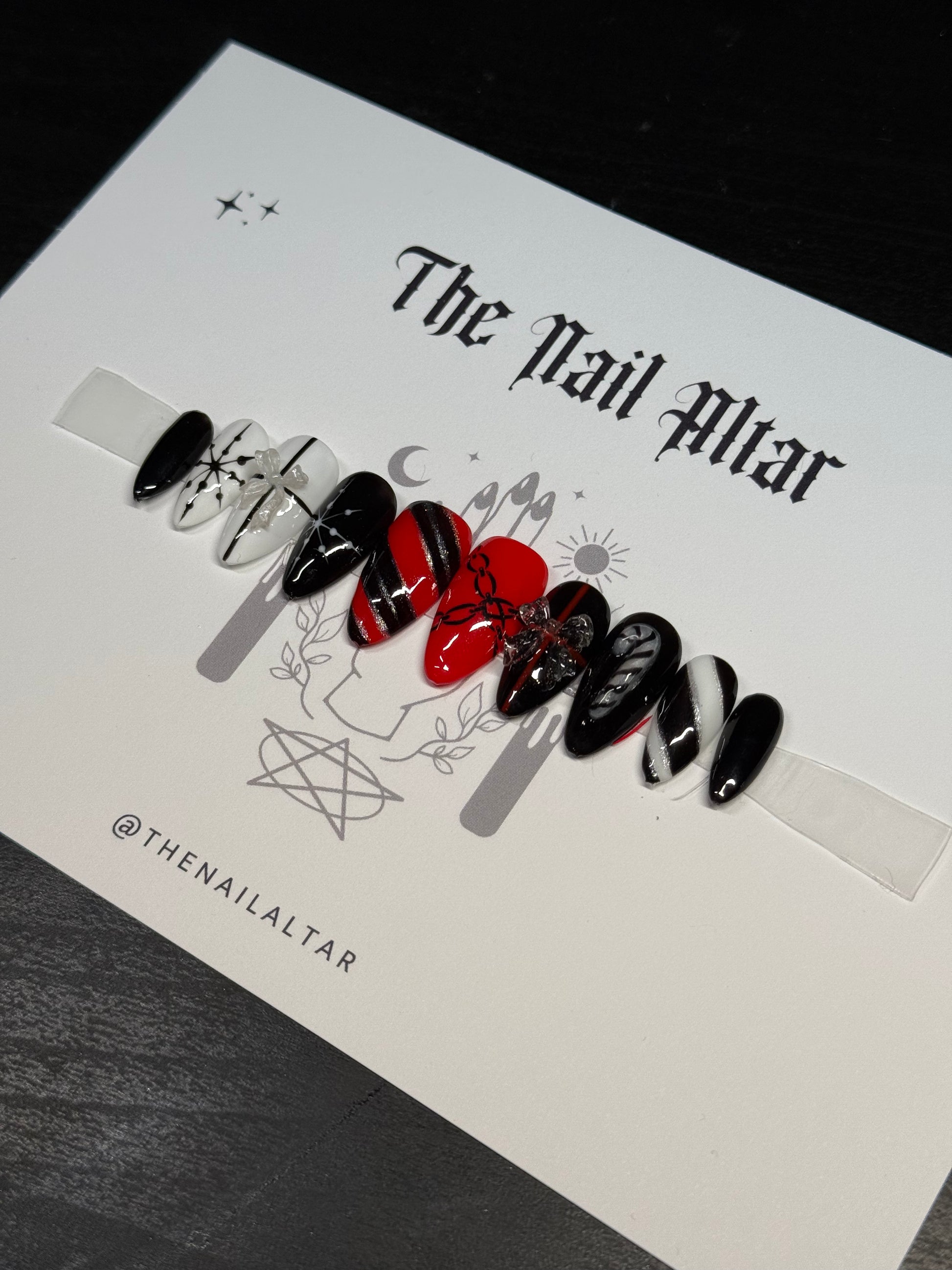 Meet our limited-edition Spooky Christmas press-ons: where eerie meets merry and the holiday spirit takes a delightfully darker turn.
