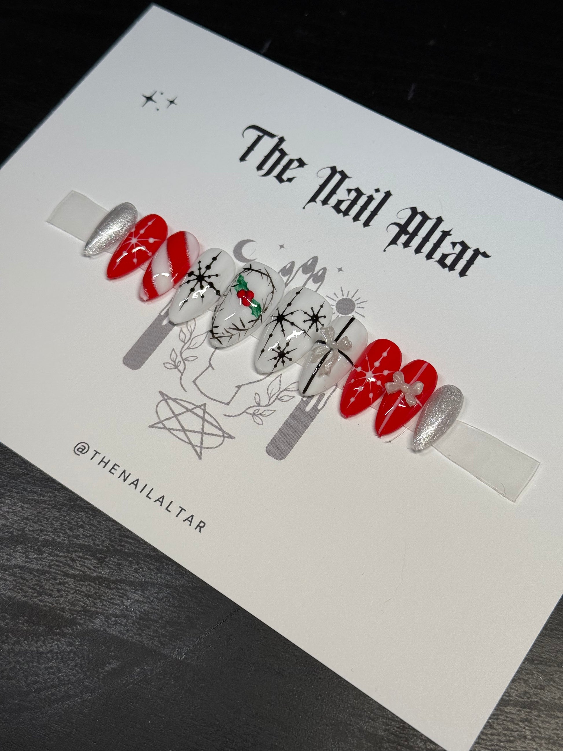 Meet our limited-edition Spooky Christmas press-ons: where eerie meets merry and the holiday spirit takes a delightfully darker turn.