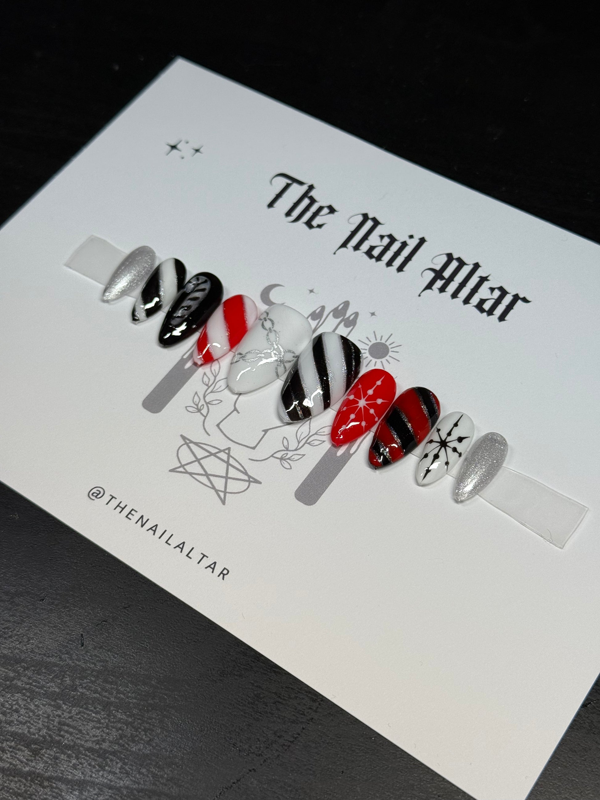 Meet our limited-edition Spooky Christmas press-ons: where eerie meets merry and the holiday spirit takes a delightfully darker turn.