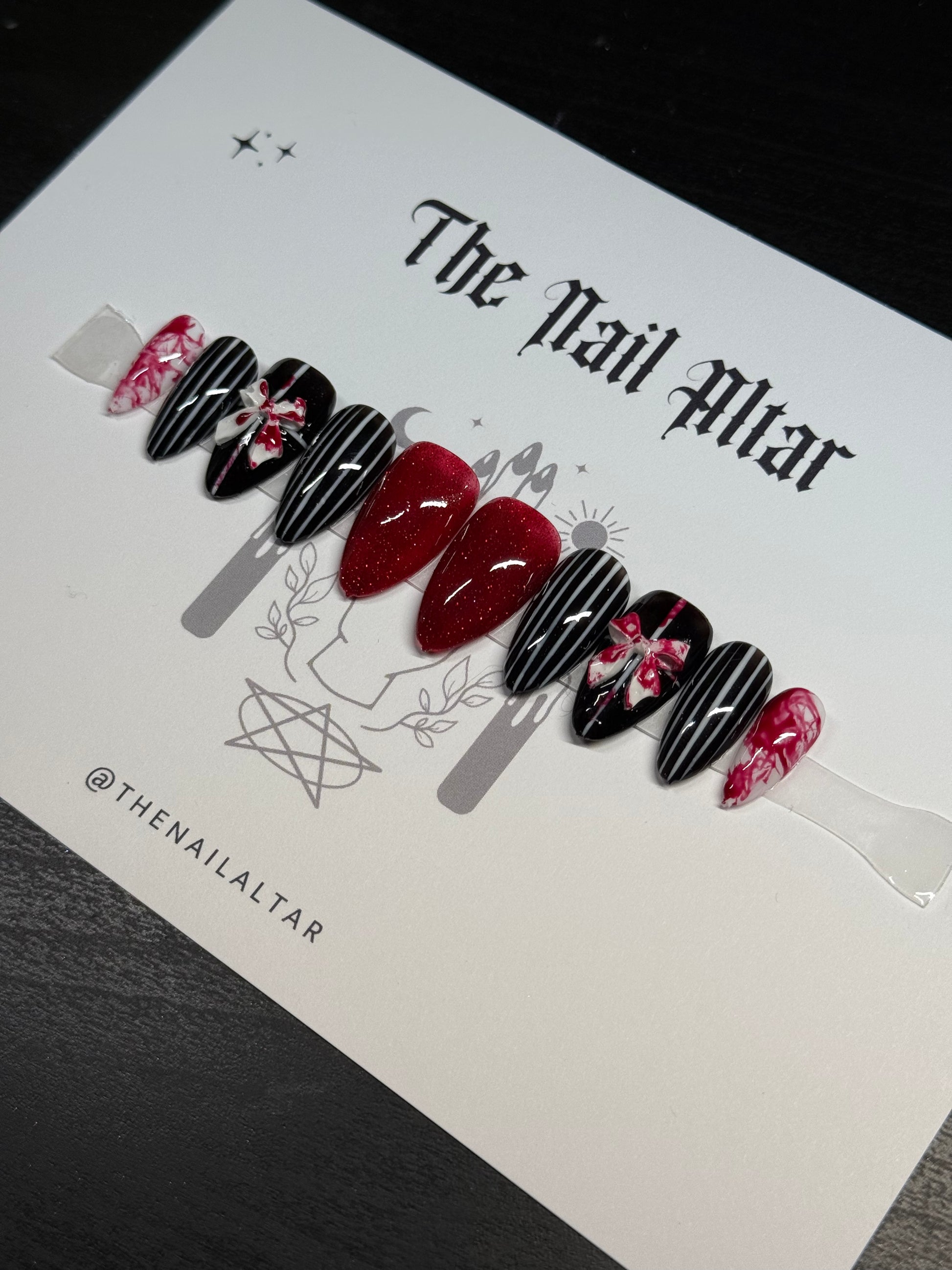 - 10 Custom-Fit Nails: Hand painted in your chose shape and sizes.