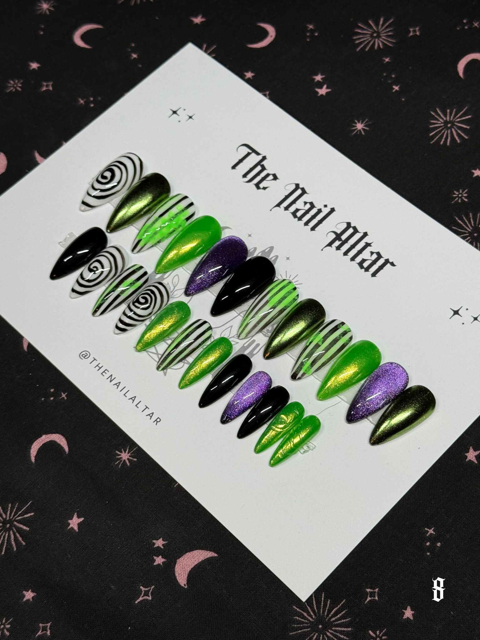 For the nights when you're the main character...and maybe the villain. Hand-painted on 100% soft gel nail tips for strength that endures every creek in the night. Wear again and again for endless frights.